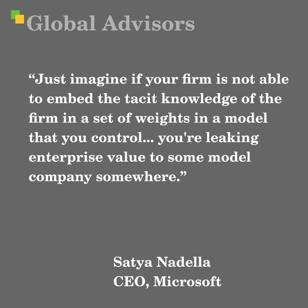 “Just imagine if your firm is not able to embed the tacit knowledge of the firm in a set of weights in a model that you control… you’re leaking enterprise value to some model company somewhere.” – Satya Nadella – CEO, Microsoft